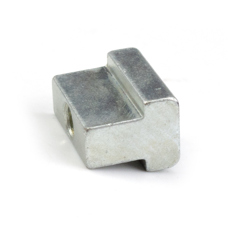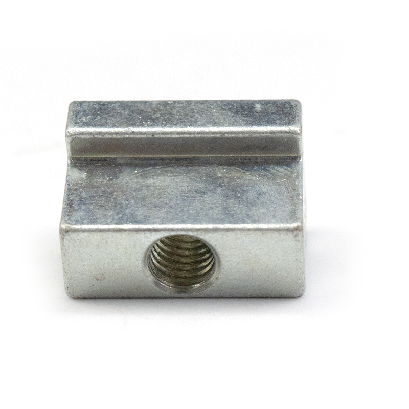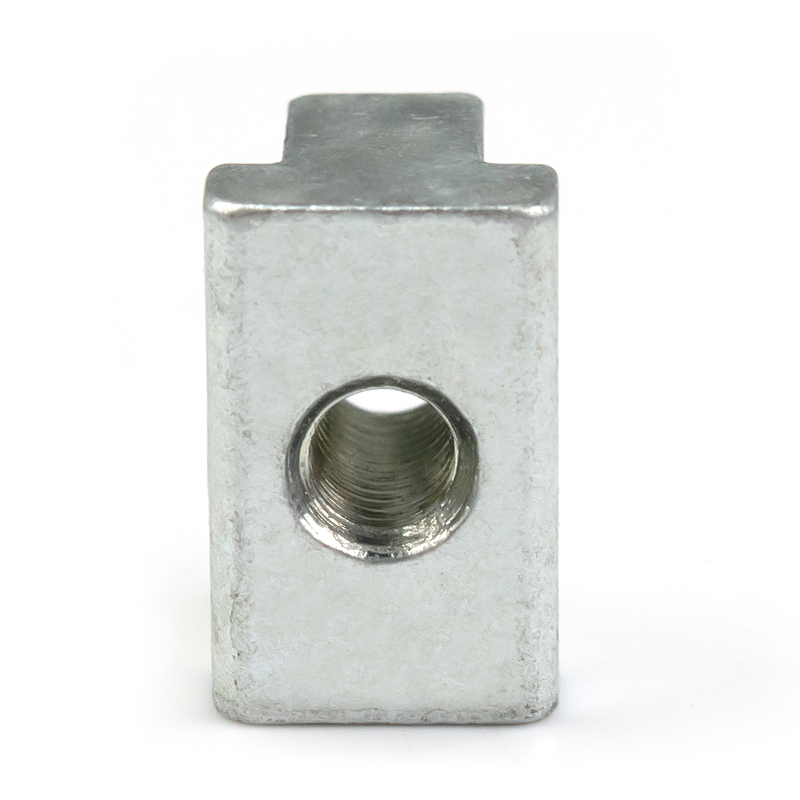 This is a custom-made T-slot slider nut. It can be made of stainless steel, carbon steel or aluminum, and is formed through hot forging or die-casting processes. The surface can be treated with natural color, galvanized or anodized. The main body of the product is in a rectangular block shape. At the top, there is a T-shaped sliding rail protrusion that matches the aluminum profile channel. In the middle, there is a standard internal thread hole that is longitudinally贯穿processed. This "slider + nut" integrated design enables it to freely slide and position within the T-slot channel of industrial aluminum profiles, and can be quickly locked with external connecting components through lateral bolts. Compared to traditional rear-mounted ball nuts, this slider nut has higher bearing stiffness and more precise positioning stability. It is the preferred connection solution for heavy-duty frames and high-precision equipment. The non-standard customization feature allows for adjusting the slider size, thread direction and protrusion shape according to the profile series, load requirements and space limitations.
